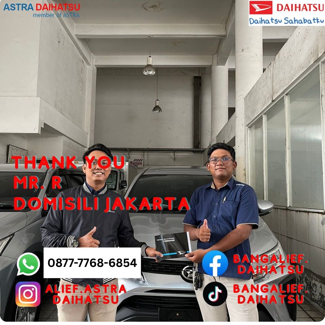 Perkenalkan saya Alief, sales marketing resmi dari Astra Daihatsu Jayakarta Jakarta Pusat. Kami merupakan showroom resmi Astra Daihatsu dimana unit Daihatsu yang dipesan melalui kami selalu ready di semua varian. kami juga bisa melayani penjualan baik secara cash, kredit, maupun Trade In (tukar tambah). Kami dapat melayani penjualan ke seluruh wilayah di Indonesia. Transaksi sangat aman dengan pelayanan yang cepat, dan terpercaya